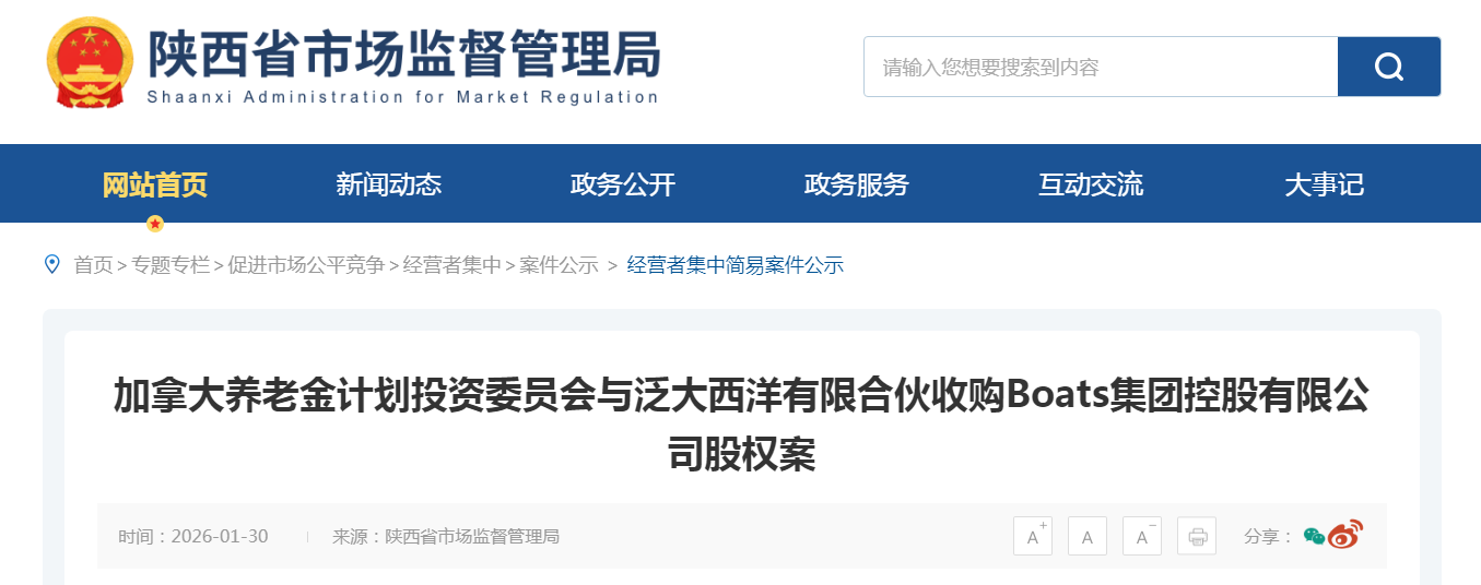加拿大養老金計劃投資委員會與泛大西洋有限合伙收購Boats集團控股有限公司股權案