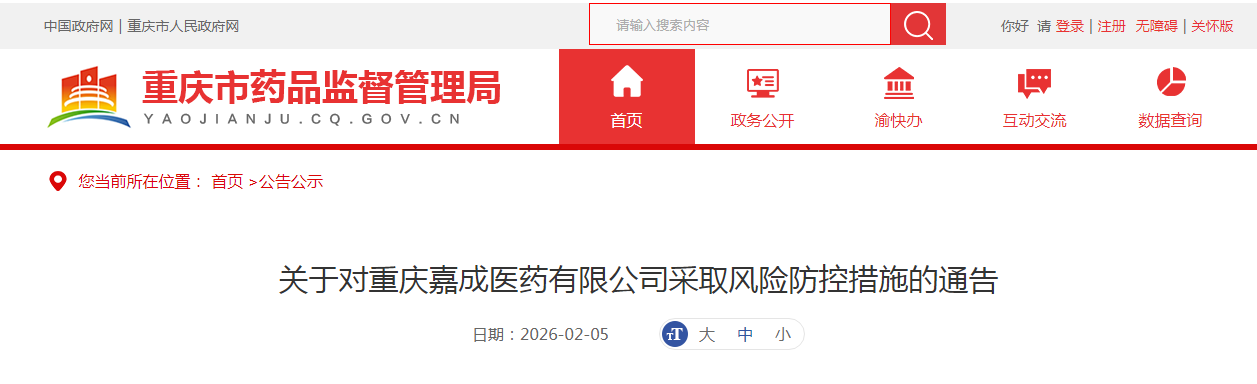關于對重慶嘉成醫藥有限公司采取風險防控措施的通告