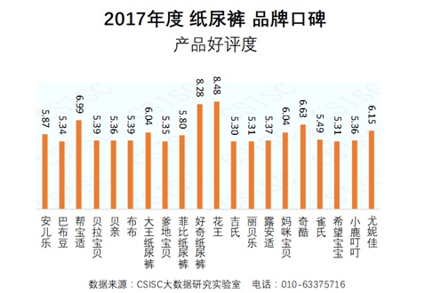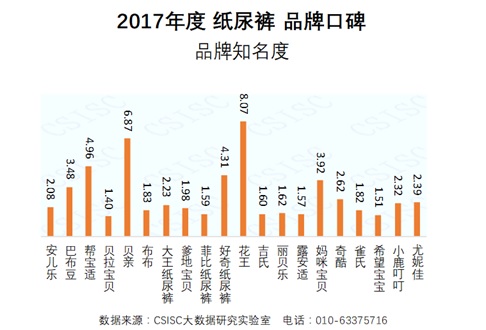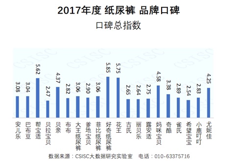 中國質量新聞網訊 CSISC大數據研究實驗室基于國統?首頁HOMEBA平臺數據和大數據技術手段,以第三方視角,從國內紙尿褲市場中篩選出20個表現比較突出的品牌作為研究對象,包括:安兒樂、巴布豆、幫寶適、貝拉寶貝、貝親、布布、大王、爹地寶貝、菲比、好奇、花王、吉氏、麗貝樂、露安適、媽咪寶貝、奇酷、雀氏、希望寶寶、小鹿叮叮、尤妮佳(以字母順序名次),綜合運用網媒、電商、論壇等網絡數據,通過品牌知名度、企業美譽度、品牌健康度、質量認可度、產品好評度、消費者互動度等六個維度對這20個紙尿褲品牌進行了品牌口碑指數評價,形成了《2017年度紙尿褲品牌口碑研究報告》(以下簡稱“報告”)。